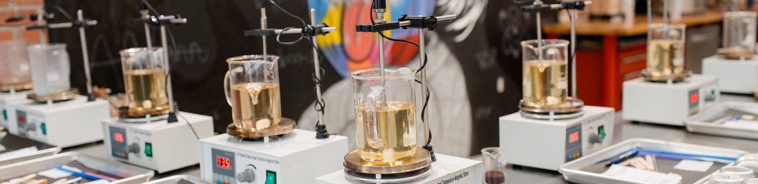 Unlike other candle-making experiences, Thee Candle Lab is a laboratory. Our easy and fun process emphasizes the scientific aspect of fragrance-blending by giving each customer a lab coat. From there, they can create a custom scent from a blend of over 30 different fragrance choices. That scent can be blended into candles or other body and home care products, including different vessels, colors, and toppings to showcase their unique creative spirit. Even better, our BYOB policy allows adult customers to enjoy their favorite beverage while they create. When finished, they can also sign one of the bricks on our signature pick-a-brick wall!